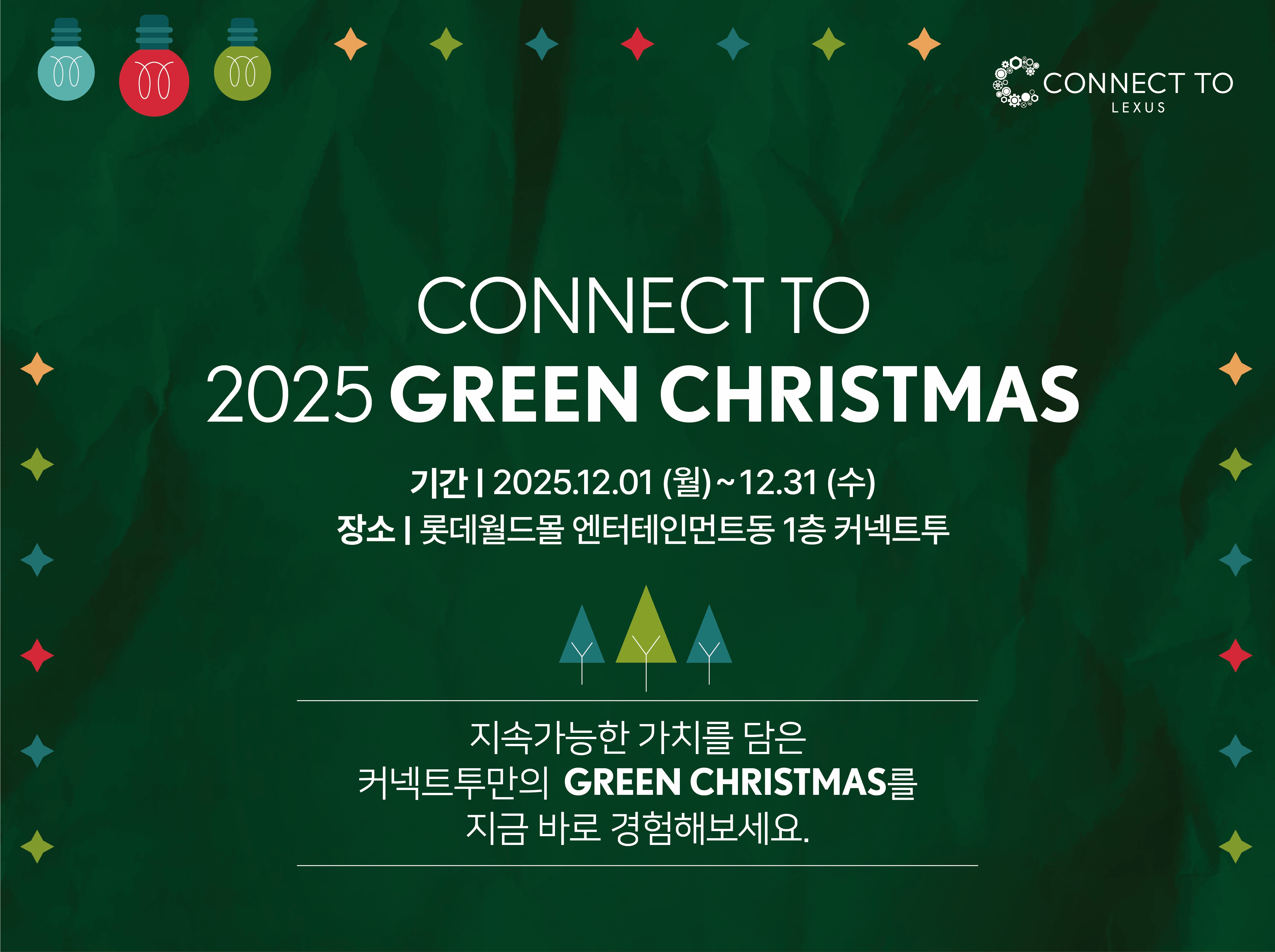 렉서스코리아가 연말 시즌을 맞아 내달 1일부터 31일까지 복합문화공간 커넥트투에서 '그린 크리스마스'를 테마로 다양한 겨울 시즌 프로그램을 운영한다고 27일 밝혔다.