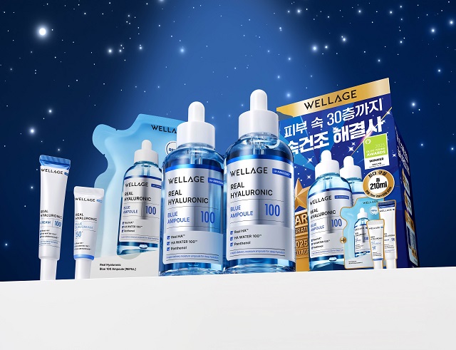 이번 수상으로 웰라쥬는 12월 '올영 PICK 브랜드'로 선정돼 한정 기획세트 및 할인 프로모션을 진행한다. 기획세트는 △100앰플 본품 75ml 2개 △리필 60ml △100크림 △블루 선크림 등으로 구성해 브랜드의 핵심 '수분 라인'을 체험할 수 있게 했다.