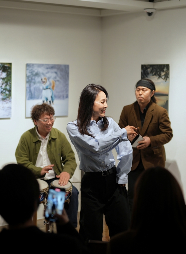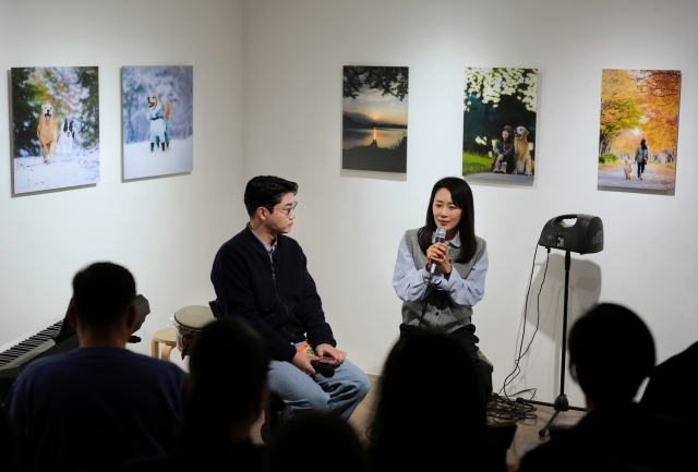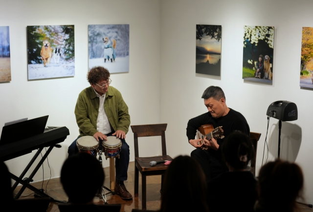 문정희 작가는 설채현 수의사와의 대화 후, 공연으로 이어졌다. 사진가 셀모킴의 기타 연주로 시작해, 퍼커션 조재범, 피아노 염신혜, 플룻 이규재의 연주가 이어졌다. JTBC '펜텀싱어3' 출신 박현수의 목소리가 더해졌다. 조재범 밴드와 호흡을 맞추며 문정희가 살사 댄스를 선보였다. 음악은 애도의 분위기보다는 축제에 가까웠고, 그 안에서 ‘마누’는 기념이 아니라 함께 춤추는 존재처럼 호명됐다. -