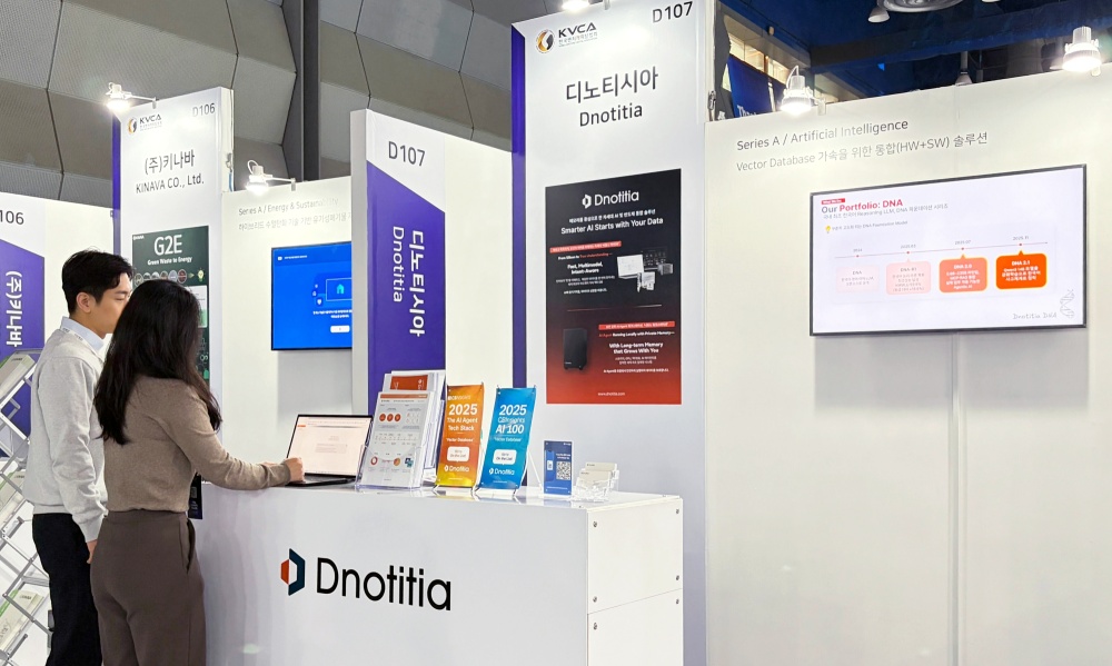 디노티시아가 AI 인프라 핵심 기술인 벡터 데이터베이스를 앞세워 검색증강생성 시장 진출에 속도를 낸다. 10일 코엑스 B홀에서 열린 스타트업 페스티벌 ‘컴업(COME UP) 2025’에서 정무경 디노티시아 대표는 자사의 벡터DB ‘씨홀스’와 이를 활용한 실사용 기반 AI 서비스를 공개하며 시장 확장 의지를 드러냈다.
