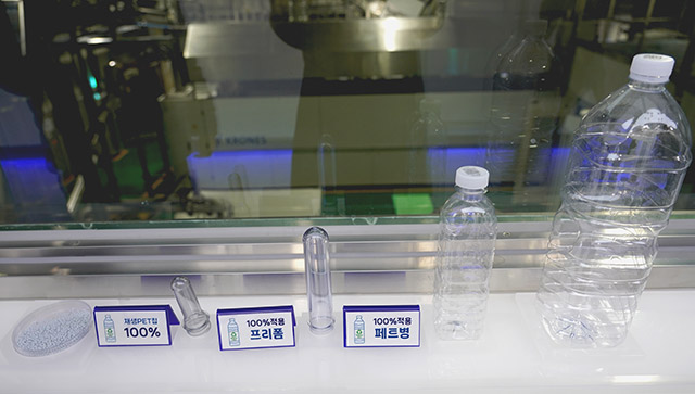 특히 10%를 넘어 100% 재생원료(rPET) 적용까지 연구개발이 완료된 상태다. 연구소 관계자는 “법 시행 시점에 맞추는 것이 아니라 기준을 먼저 끌어올리는 방식을 택하고 있다”며 “재생원료를 사용해도 물맛과 내압성, 장기 보관 안정성이 흔들리면 안 된다”고 강조했다.