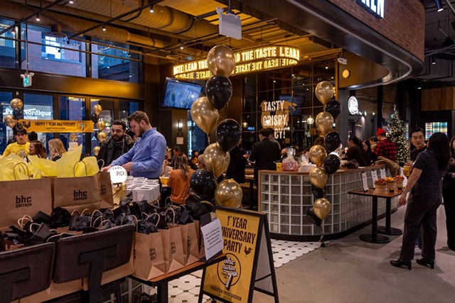 bhc는 지난 11일(현지시각) 캐나다 토론토 중심부 복합 쇼핑몰 더 웰(The Well)에 위치한 캐나다 1호점에서 개점 1주년 기념행사를 열고, 그간의 운영 성과와 향후 사업 방향을 공유했다. 행사에는 다이닝브랜즈그룹 해외사업본부 관계자를 비롯해 현지 예비 가맹 파트너, 쇼핑몰 관계자, 현지 미디어 및 업계 관계자 등 약 100명이 참석했다.