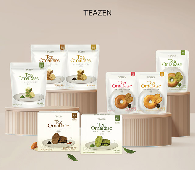티젠 티 오마카세는 호지차, 말차, 얼그레이, 우롱차 등 차 원료를 기반으로 맛을 구현한 티 베이스 스낵으로 구성됐다. 티젠은 차 고유의 풍미를 살리기 위해 원료별 특성을 고려해 블렌딩 비율을 조정했다고 설명했다.
