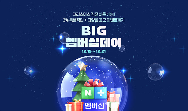 네이버는 연말을 맞아 오는 15일부터 21일까지 일주일간 BIG 멤버십데이를 진행한다고 밝혔다. 이번 행사는 네이버플러스 멤버십 이용자를 대상으로 쇼핑 혜택을 확대하는 데 초점을 맞췄다.