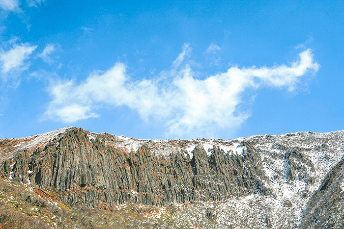 '제주 한라산 어리목~영실 코스 2박 3일'은 설경을 제대로 감상하고 싶은 이들을 겨냥한 중상 난이도의 능선 종주 코스다. 한라산 서쪽 남벽 능선을 따라 눈꽃이 핀 절벽과 능선, 운해까지 한눈에 담을 수 있다. -
