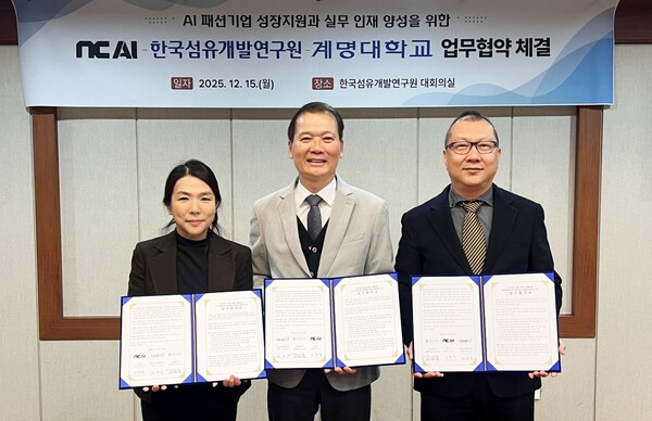 NC AI가 한국섬유개발연구원(이하 연구원)과 계명대학교와 손잡고 지역 패션 산업의 디지털 전환과 AI 역량 강화를 위한 협력체계를 구축했다고 16일 밝혔다.