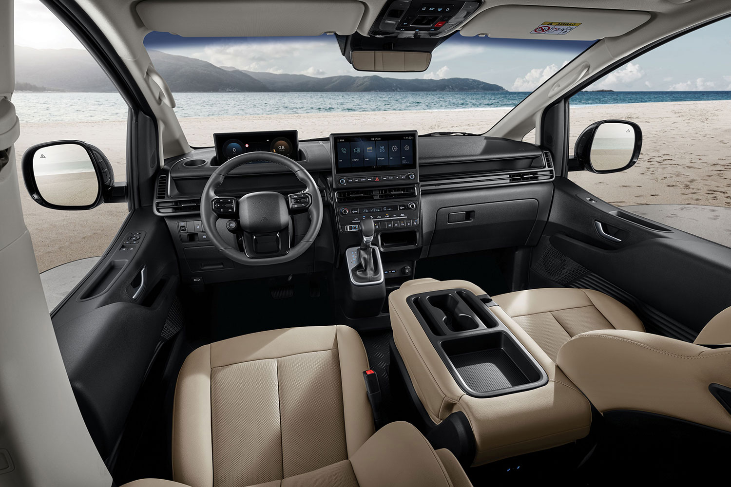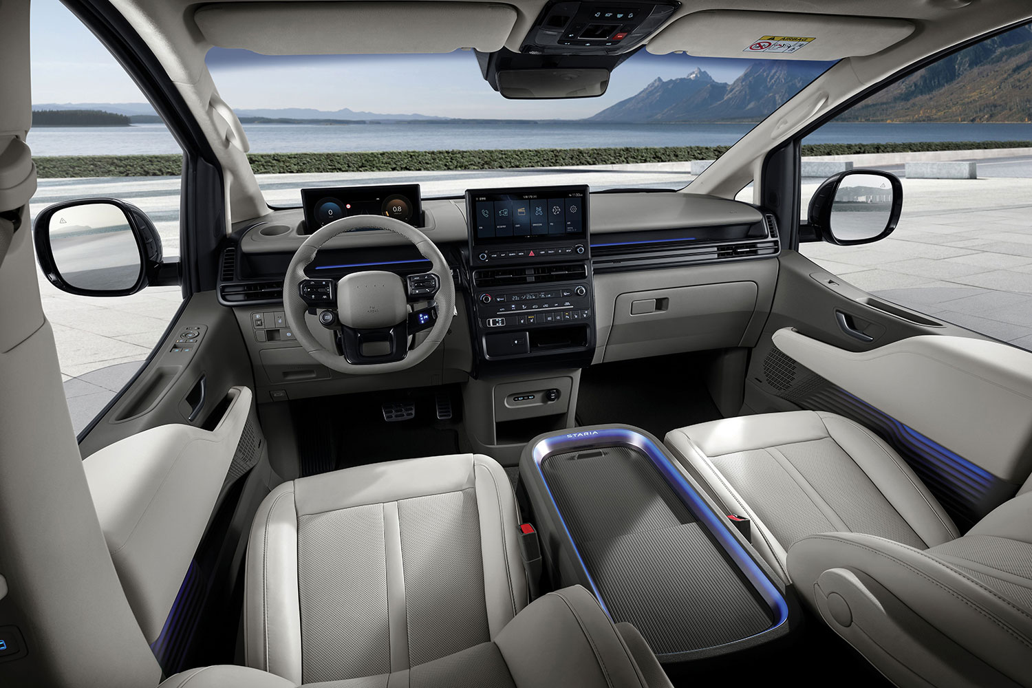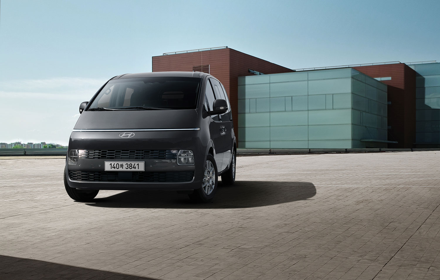 전면부는 기존 3분할 구조의 주간주행등을 하나의 수평 라인으로 연결한 연속형 램프로 변경해 일체감을 높이고 미래지향적인 이미지를 강조했다. 주간주행등 측면부에는 음각 형태의 'STARIA' 로고를 새롭게 적용해 세심한 디테일을 더했다.