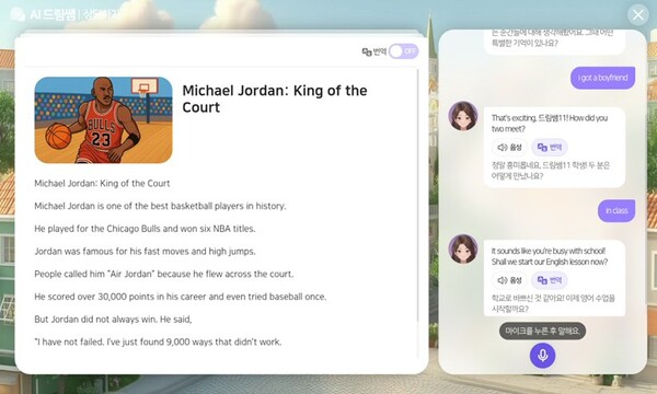 중등 드림쌤은 고지능 대형언어모델(LLM)모델에 기반해 영어 상담과 학습 멘탈 관리가 가능하다. 주 1회씩 상담이 가능하며 회차에 따라 영어 상담과 학습마음 대화를 번갈아 진행한다. 또 학생이 스스로 일정과 학습 상황에 맞춰 상담 시간을 선택, 예약할 수 있다.