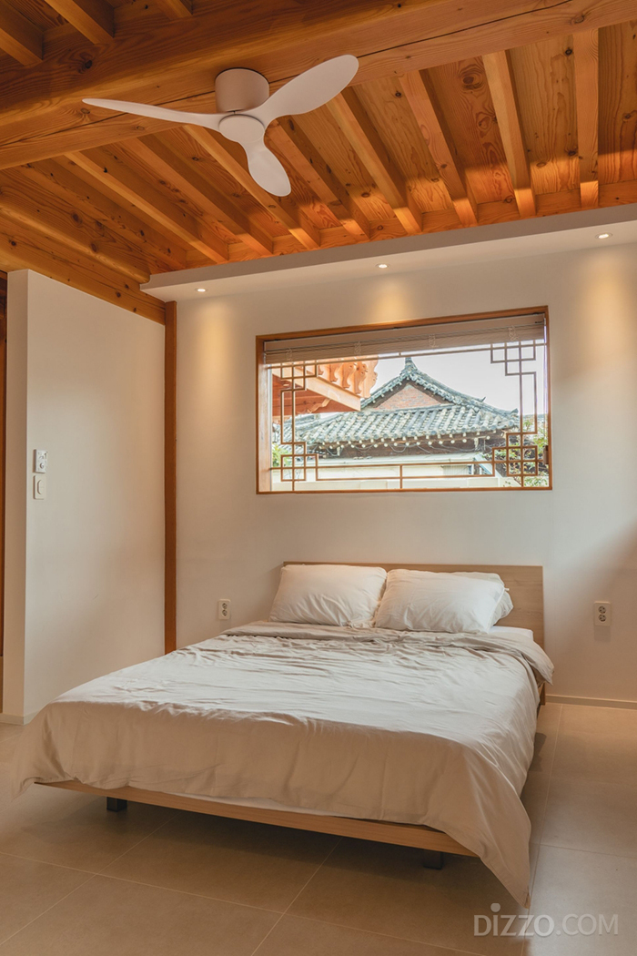 모던한 감각으로 꾸며진 이 숙소는 미니멀한 인테리어와 창밖으로 펼쳐지는 전통의 풍경이 조화를 이룬다. -