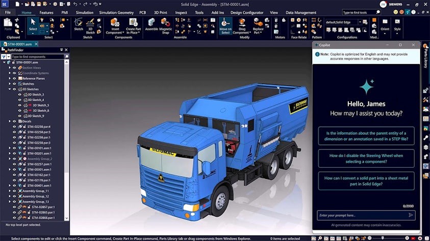 스테이플 부사장은 이번 디자인센터 솔리드 엣지 2026의 핵심 변화로 속도, 직관성, 일상적인 사용성을 꼽았다. 그는 “반복적인 단계를 줄이고 일반적인 워크플로우를 간소화하는 다양한 AI 지원 도구가 도입됐다”고 밝혔다. 대표적인 것이 ‘자동 도면 생성’과 ‘마그네틱 스냅 어셈블리(Magnetic Snap Assembly)’와 같은 기능이다. AI 기반 ‘디자인 코파일럿’은 애플리케이션 내에서 상황에 맞는 지원을 직접 제공해 사용자가 복잡한 작업을 수행하는 동안에도 집중할 수 있도록 돕는다.