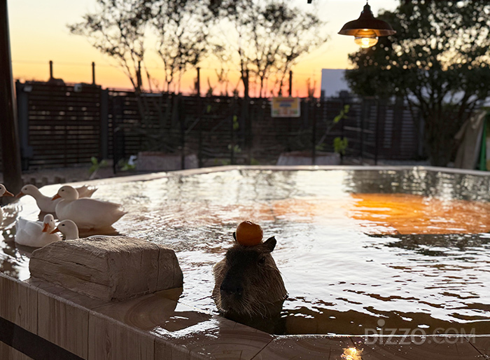 낮에는 지난 해 7월 개장한 모모쥬 동물원을 방문했다. 국내 최초 카피바라 특화 동물원이라는 타이틀답게, 따뜻한 온천욕을 즐기는 카피바라의 모습에 방문객들은 사진으로 그 모습을 남기기에 여념이 없었다. -