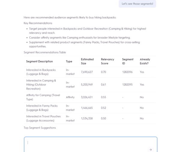 기업간거래(B2B) 영역에서도 AI 에이전트의 활용이 진행되고 있다. ‘오디언스 에이전트’는 마케터가 아직 고려하지 않았을 수 있는 보완적인 입찰과 순위 결정, 수요 예측, 잠재 고객군을 제안하고, 간소화된 절차를 통해 여러 세그먼트를 테스트·조합한 뒤 각 안에 대한 어피니티(affinity) 점수를 제공한다. 최소한의 설정만으로도 더욱 효과적인 캠페인 오디언스를 빠르게 구성할 수 있다.
