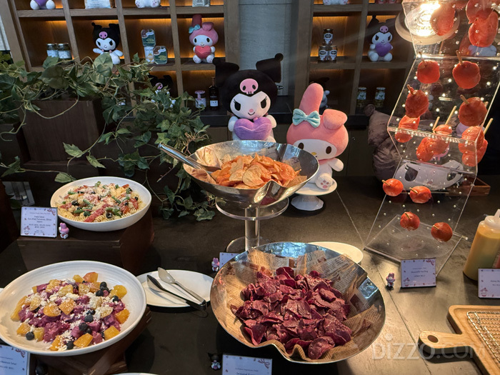 특히 룸 패키지에 대한 설명에서는 "산리오 테마로 꾸민 특별한 객실 패키지에는 아름다운 애프터눈 티와 함께 마이멜로디와 쿠로미 굿즈가 포함되어 있다"며 "오늘 행사장 한쪽에 룸 패키지에 제공되는 아이템들을 전시해 놨으니 뷔페를 즐기시면서 함께 보시길 바란다"고 덧붙였다.