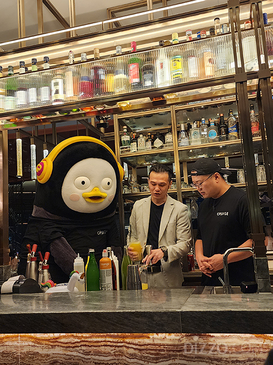 밤이 되자 펭수는 하얏트 센트릭 빅토리아 하버 호텔 23층에 위치한 '크루즈 레스토랑 & 바(Cruise Restaurant & Bar)'의 바텐더로 변신했다. 빅토리아 하버가 한눈에 내려다보이는 루프탑에서 칵테일을 만들며 홍콩의 화려한 나이트라이프를 경험했다.