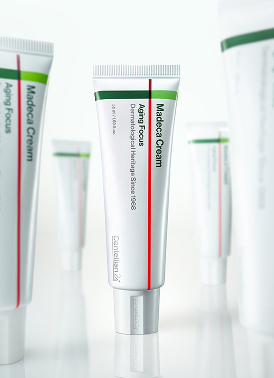 이번에 2년 만에 리뉴얼돼 선보인 2026 마데카 크림 에이징 포커스는 슬로 에이징 트렌드를 반영한 안티에이징 제품이다. 핵심 성분인 테카를 미세화해 기존 대비 크기를 약 10% 수준으로 줄였으며, 이마·눈가·팔자주름·목 등 주요 부위 관리를 고려한 제품 설계를 적용했다.