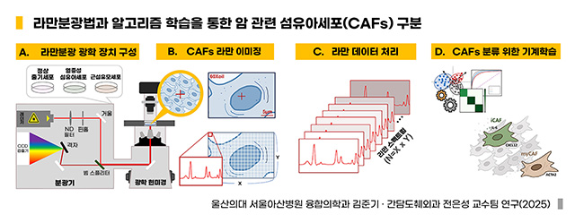 서울아산병원은 울산의대 융합의학과 김준기 교수와 간담도췌외과 전은성 교수 연구팀이 무표지 라만 분광 기술과 인공지능 분석을 결합해 췌장암 미세환경을 구성하는 섬유아세포 아형을 높은 정확도로 구분하는 기초연구 성과를 발표했다고 밝혔다.