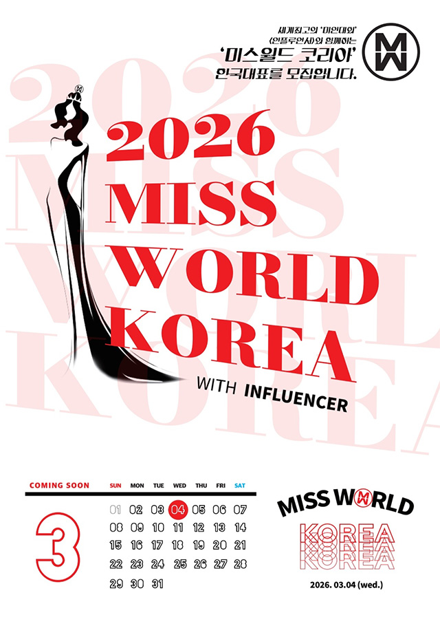 미스월드 한국 대표를 선발하는 2026 미스월드코리아 선발대회가 3월 4일 서울에서 열린다. 이에 앞서 주관 측은 2월 5일까지 참가자 모집을 진행하고 있다.