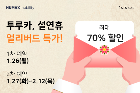 휴맥스모빌리티의 카셰어링 플랫폼 투루카가 설 연휴를 앞두고 최대 70% 할인하는 '얼리버드 프로모션'을 실시한다고 23일 밝혔다.