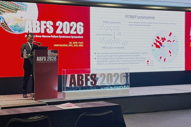 쿠와나 교수는 "기존 치료제들이 주로 혈소판 생성을 촉진하는 것과 달리 포스타마티닙은 대식세포 내 신호전달에 관여하는 SyK를 억제해 혈소판 파괴 경로를 차단한다"며 "면역세포의 한 종류인 B세포의 자가항체 생성 신호에도 영향을 줄 수 있는 독특한 작용기전을 가진다"고 설명했다.