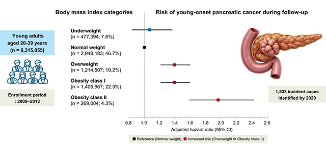 연구를 이끈 홍정용 교수는 “20~39세 성인을 대상으로 한 대규모 자료를 통해, 젊은 연령층에서도 과체중 단계부터 췌장암 발생 위험이 커질 수 있음을 확인했다”며 “젊은 췌장암(young-onset pancreatic cancer)의 위험 요인을 이해하는 데 중요한 근거가 될 수 있다”고 말했다.