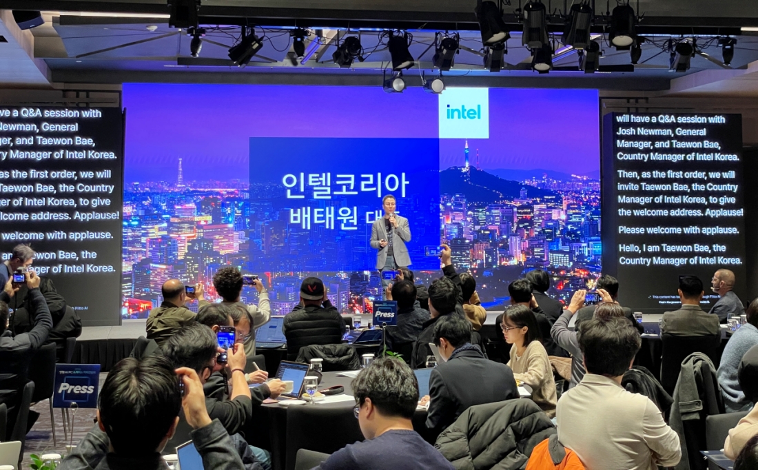 이날 행사에는 배태원 인텔코리아 사장을 비롯해 조쉬 뉴먼 인텔 컨수머PC 부문 총괄, 삼성전자 이민철 부사장, LG전자 장진혁 전무가 참석해 신제품을 잇따라 발표하며 AI PC 생태계 확장을 예고했다. 배태원 사장은 개회사에서 “2025년 기준 국내 주요 리테일 채널에서 판매된 인텔 칩 기반 AI PC 비중이 이미 40%를 넘어섰다”며 “코어 울트라 시리즈 3는 단순한 신제품 출시를 넘어 전 세계 반도체 제조 기술 리더십이 어디에 있는지를 증명하는 결과물”이라고 강조했다.
