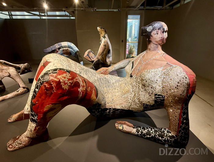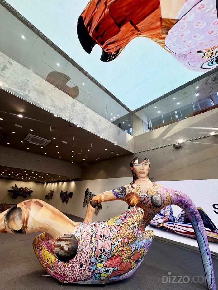 1층에서는 '에어매스(Air-mass)' 시리즈와 '릴리프(Relief)' 연작이 관람객을 맞는다. 벌룬으로 채워진 에어매스 시리즈는 지지 하디드 등 패션 매거진과 인터넷에서 수집한 이미지들로 콜라주되어 있다.