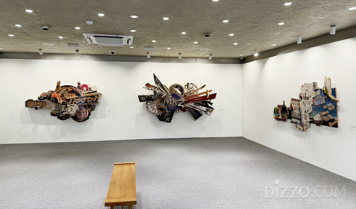 전시를 주관한 더 트리니티 갤러리의 박소정 대표는 1층 릴리프 작품에 대해 "평면인 듯해도 완전하게 프레임을 벗어나지 못한 부조 상태로, 미디어가 보여주는 일방적 단면처럼 관람객이 수동적으로 받아들일 수밖에 없는 감상 태도를 의미한다"고 설명했다.
