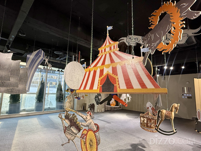 4층에서는 모빌 작품을 통해 사물이 다시 우주로 환원되는 순간을 서커스 같은 축제로 표현했다. 쇼스타코비치 왈츠부터 칼리 메시나의 아기 코끼리 걸음까지 경쾌한 선율이 흐르며, 알렉산더 칼더에서 영향받은 54피스 중 35점이 공간에 맞춰 선별됐다. 관람객은 작품 사이를 거닐며 각자의 동선을 만들 수 있다. 박 대표는 "관객과 같이 마치 정원을 걷듯이 만들어진 공간"이라고 설명했다.