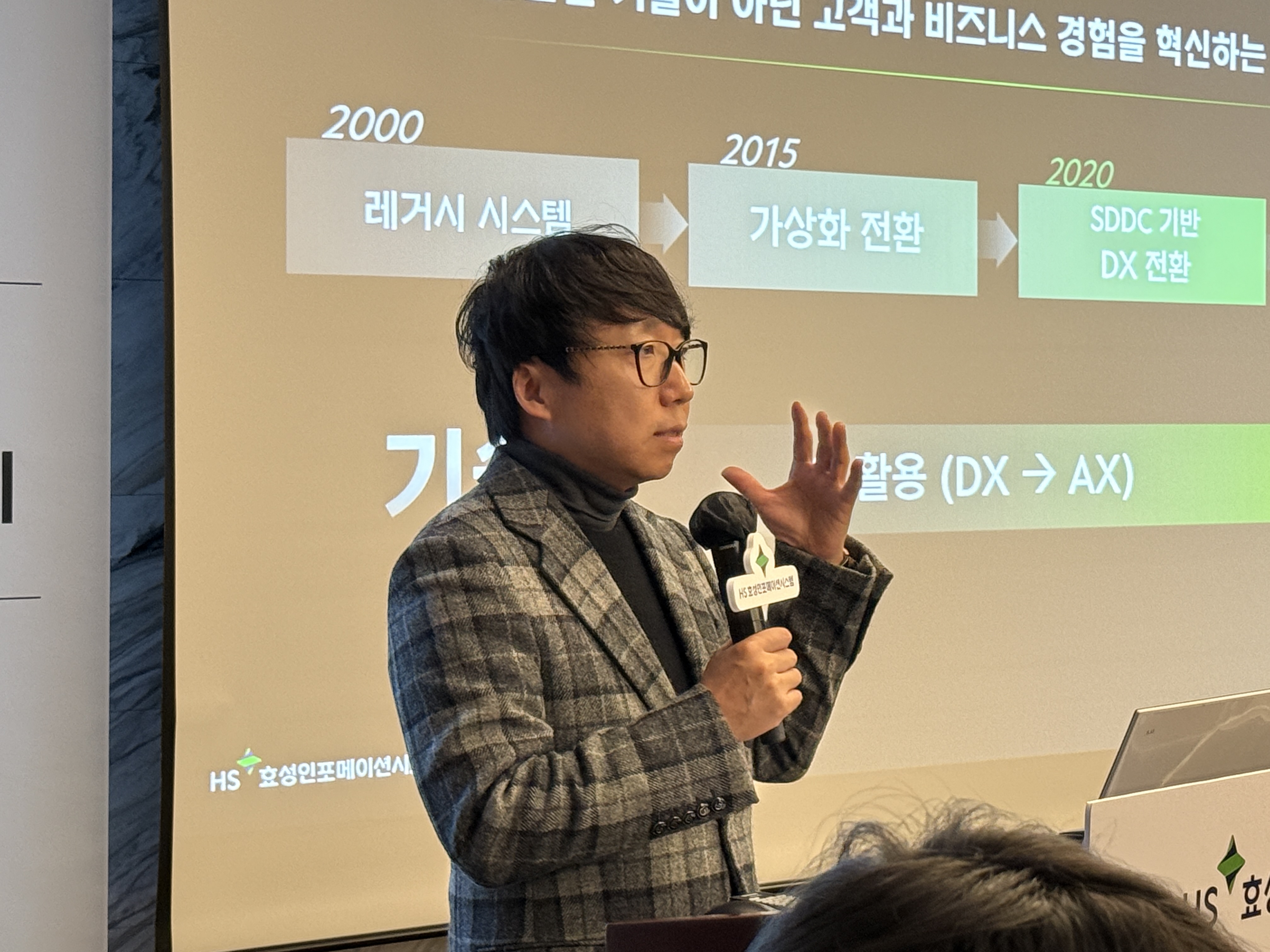 HS효성에 따르면 AI는 단순 기술이 아니다. 박 팀장은 “AI는 단순한 기술이 아닌 고객과 비즈니스 경험을 혁신하는 변화의 초석”이라며 “2000년대 레거시 시스템, 2015년 가상화 전환, 2020년 SDDC 기반 DX 전환을 거쳐 2026년 이후 AI 기반 AX 전환이 본격화하고 있다”고 설명했다.