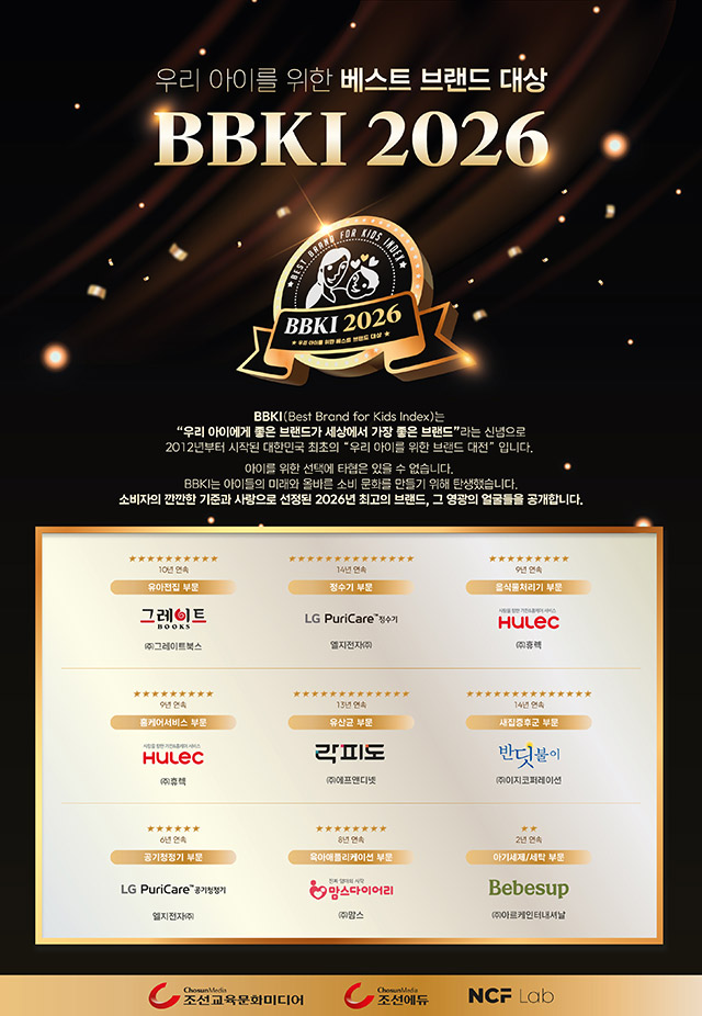 조선에듀와 조선교육문화미디어가 주최하는 BBKI는 올해로 15회를 맞았다. 유아 산업 관련 브랜드를 대상으로 한 어워즈로, 올해는 식품·교육·가전·서비스 등 30개 산업 부문에서 대상 브랜드가 선정됐다.