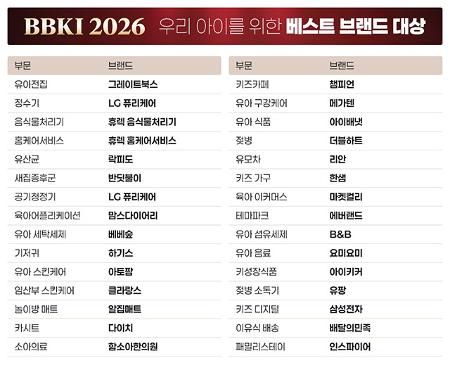 2026 우리 아이를 위한 베스트 브랜드 대상(BBKI 2026) 수상 브랜드가 11일 발표됐다.