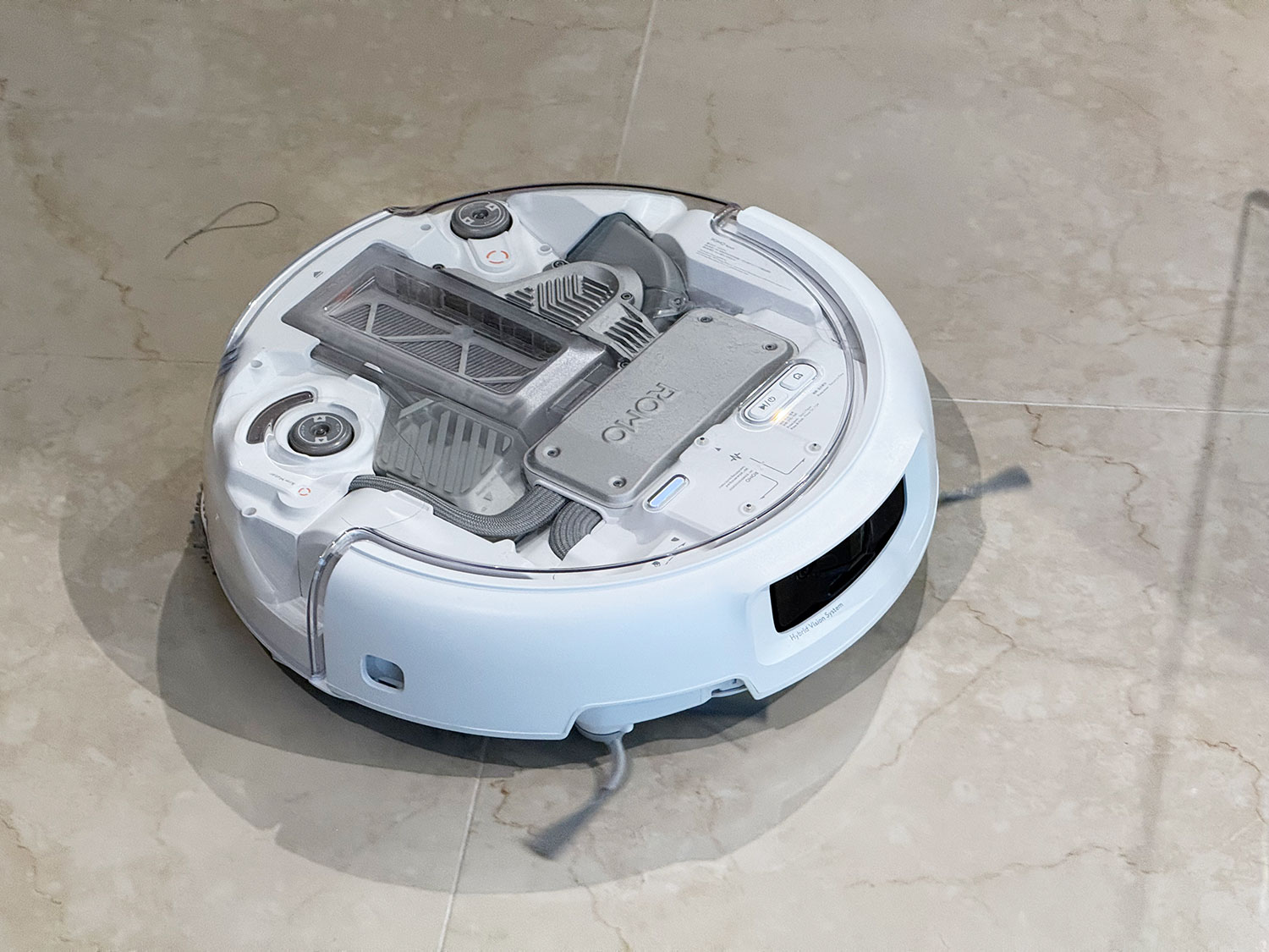 ROMO는 164ml 내장 물탱크를 탑재했다. 청소 중 오염도에 따라 물 분사량을 자동 조절하며, 오염이 심한 구간에서는 더 많은 물을 분사한다.