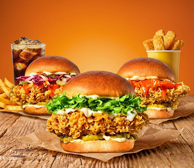 현재 판매 중인 메뉴는 코울슬로 치킨 버거, 클래식 치킨 버거, 콰삭 치킨 버거 등 3종이다. 각 메뉴는 치킨 패티에 소스와 채소 등을 조합한 형태로 구성됐다. 세트 메뉴에는 버거와 함께 사이드 메뉴(해시브라운스틱 또는 케이준프라이 중 선택) 및 음료가 포함된다.