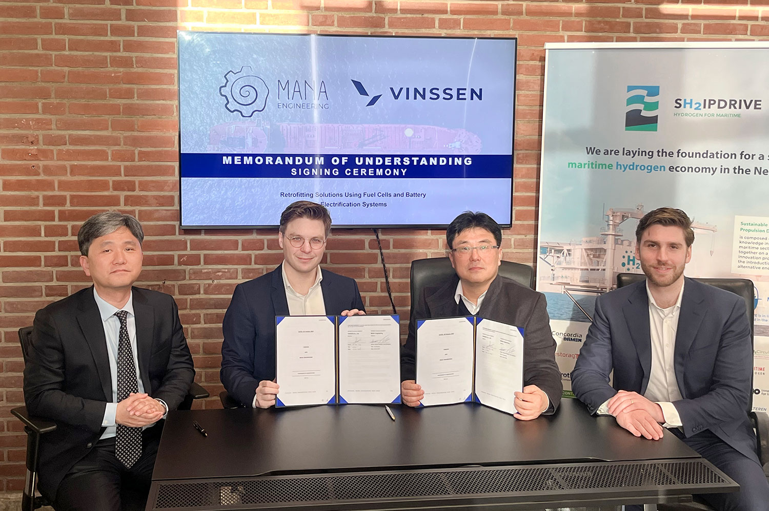 ㈜빈센이 네덜란드 해양 엔지니어링 전문기업 마나 엔지니어링과 수소연료전지 기반 선박 개조 프로젝트 협력을 위한 양해각서(MOU)를 체결했다고 23일 밝혔다.