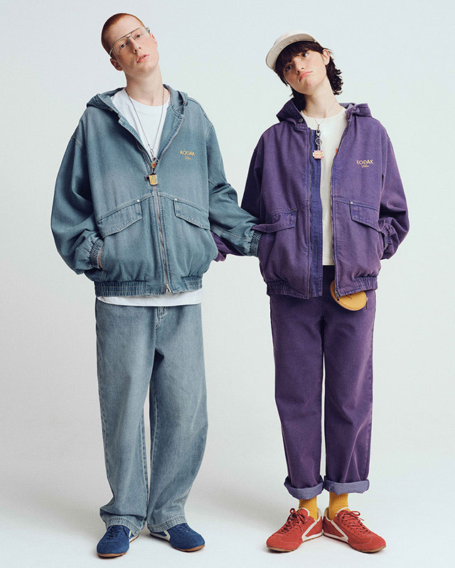 이번 컬렉션은 코닥 필름 브랜드의 색채 이미지를 현대적으로 해석한 것이 특징이다. 코닥의 엑타크롬 필름 테스트 패턴에서 착안해 빛의 삼원색(Red·Green·Blue) 개념을 디자인 요소로 반영했다. 전통적인 블루 데님을 기반으로 레드, 옐로우, 그린, 퍼플 등 다양한 컬러를 적용했다.
