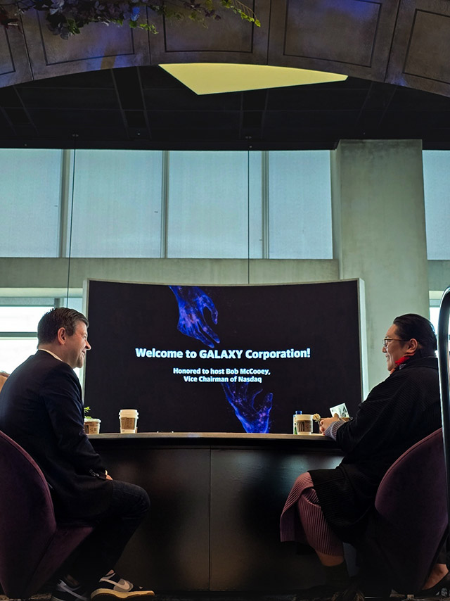 갤럭시코퍼레이션은 지난 4일 나스닥 글로벌 자본시장 총괄 부회장인 밥 맥쿠이(Bob McCooey)가 서울 여의도 본사를 방문해 회사의 중장기 사업 전략을 공유하고 미국 자본시장 진출 가능성 등에 대해 의견을 교환했다고 밝혔다.