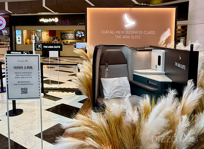 이번 팝업의 핵심 체험 공간은 보잉 777-300ER에 탑재되는 신형 비즈니스 클래스 '아리아 스위트' 좌석이다. -