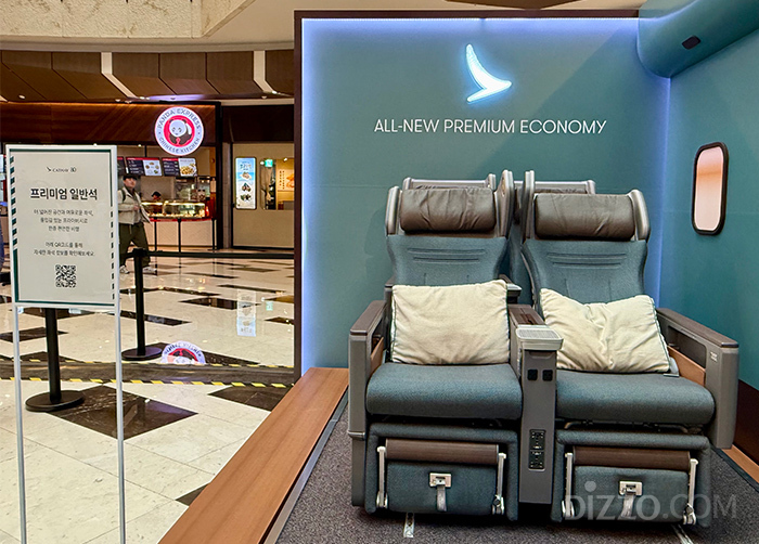 바로 옆에는 동일 기종의 프리미엄 이코노미 실제 좌석도 마련돼 두 클래스의 차이를 직접 비교해볼 수 있다.