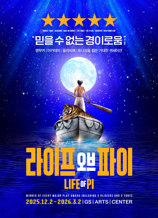 이 작품은 국내에서 ‘파이 이야기’로 알려진 작가 얀 마텔의 소설과 동명의 영화로 이미 잘 알려져 있다. 무대에서는 독창적인 연출과 시각적 장치를 통해 바다 위 생존의 여정을 표현하며 차별화된 감동을 더한다. 현재 부산에서 공연 중이며 오는 3월 15일 마지막 공연을 앞두고 있다.
