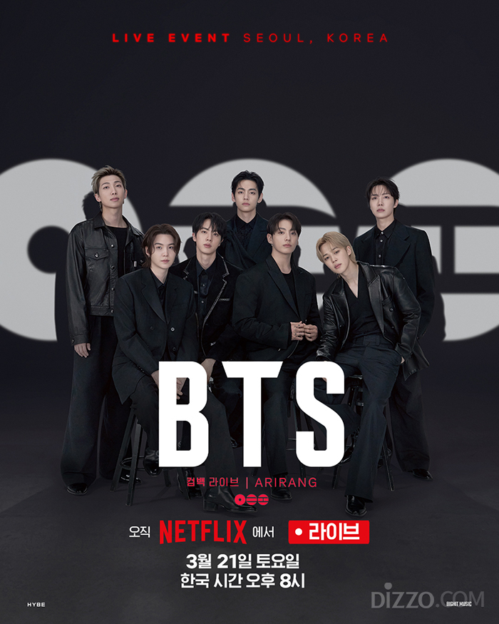 공연명은 '비티에스 컴백 라이브: ARIRANG'으로, 넷플릭스 구독자라면 TV·모바일·태블릿 등 기기에 관계없이 추가 비용 없이 시청할 수 있다.
