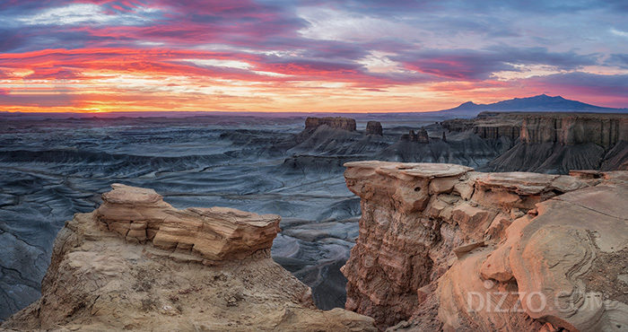 헹크스빌(Hanksville) 인근의 문스케이프 오버룩(Moonscape Overlook)은 회색 셰일 지층이 파도처럼 이어지는 360도 파노라마 전망대다. 일출·일몰 시간대에 빛의 방향에 따라 지형의 색감과 질감이 크게 달라진다.