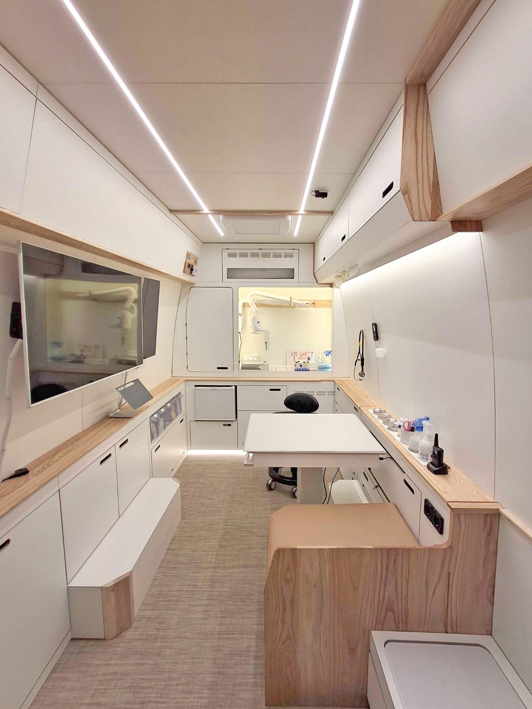 이베코 데일리 밴은 내부를 진료실과 검사 장비를 갖춘 이동형 검진 공간으로 개조해 사용된다. 차량에는 수의사가 동승하며, 기본 신체검사와 혈액·소변 검사, 영상 검사 등이 가능하다. 추가 정밀검사나 치료가 필요한 경우 인근 동물병원과 연계된다.