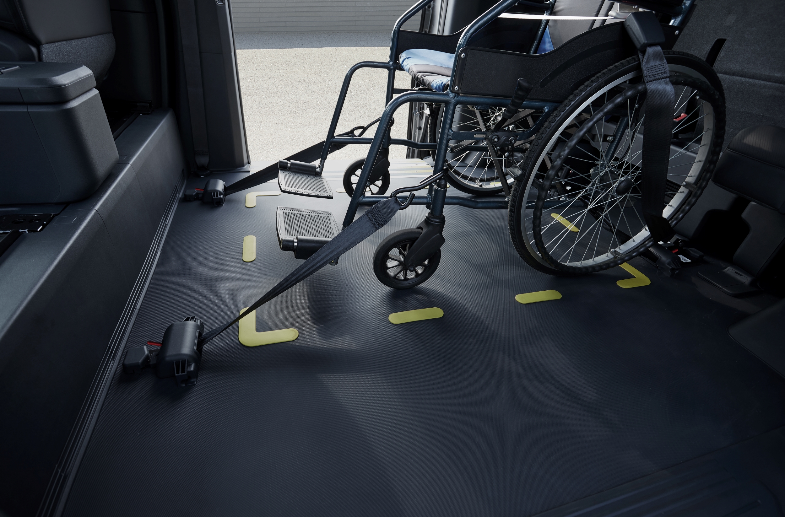 휠체어 이용 승객의 편리하고 안전한 이동을 위해 국내 전기차 최초로 측면 출입 방식이 적용됐으며, 기존 탑승 방식 대비 교통약자의 탑승 편의성과 안전성을 한층 강화했다.