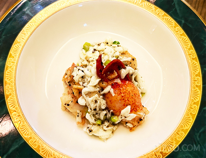 사이위힌이 맡은 특제 라오천추 소스 해파리 냉채는 흑초의 산미로 봄바다의 생동감을 표현한 전채이고, 진황 편육은 오랜 시간 브레이징해 완성한 족발 요리로 인내와 축적의 미학을 담아냈다. 건부레 송이버섯 약선탕은 국내 생산량이 희소한 국내산 송이버섯을 포함해 최고급 건부레와 말린 관자를 장시간 중탕해 맑고 깊은 풍미를 완성한 보양 수프다. 장향 유포 활 다금바리는 저온으로 부드럽게 쪄낸 생선에 정제된 간장 에센스를 더해 긴 겨울을 지나 봄을 맞이한다는 의미를 접시에 옮겼다.