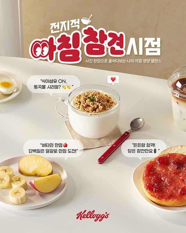 켈로그가 소비자의 실제 아침 식단을 기반으로 맞춤형 영양 코멘트를 제공하는 참여형 프로그램 ‘켈로그의 전지적 아침 참견 시점’을 운영한다. 일상적인 식습관을 자연스럽게 점검할 수 있도록 설계된 것이 특징이다.