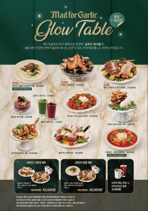 엠에프지코리아가 운영하는 외식 브랜드 매드포갈릭이 웰니스 콘셉트의 브런치 라인 글로우 테이블(Glow Table)을 선보였다.