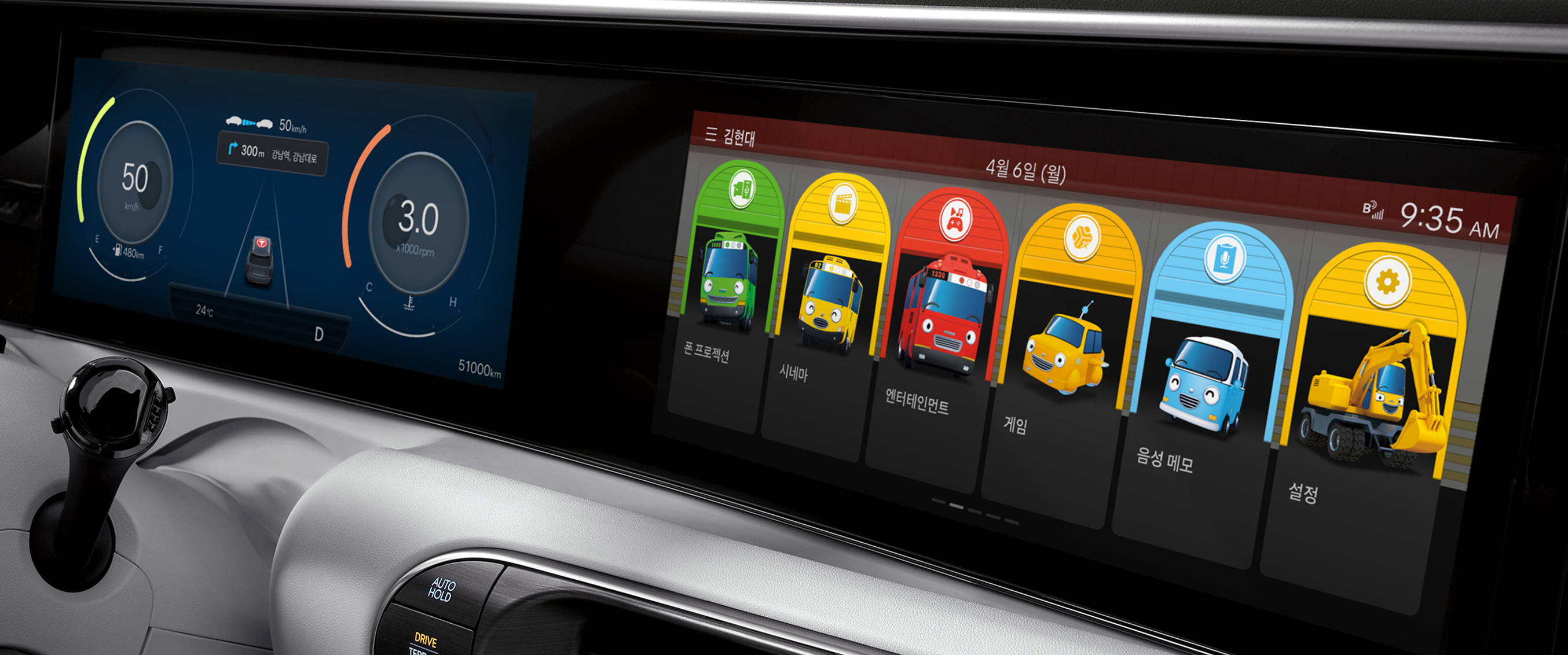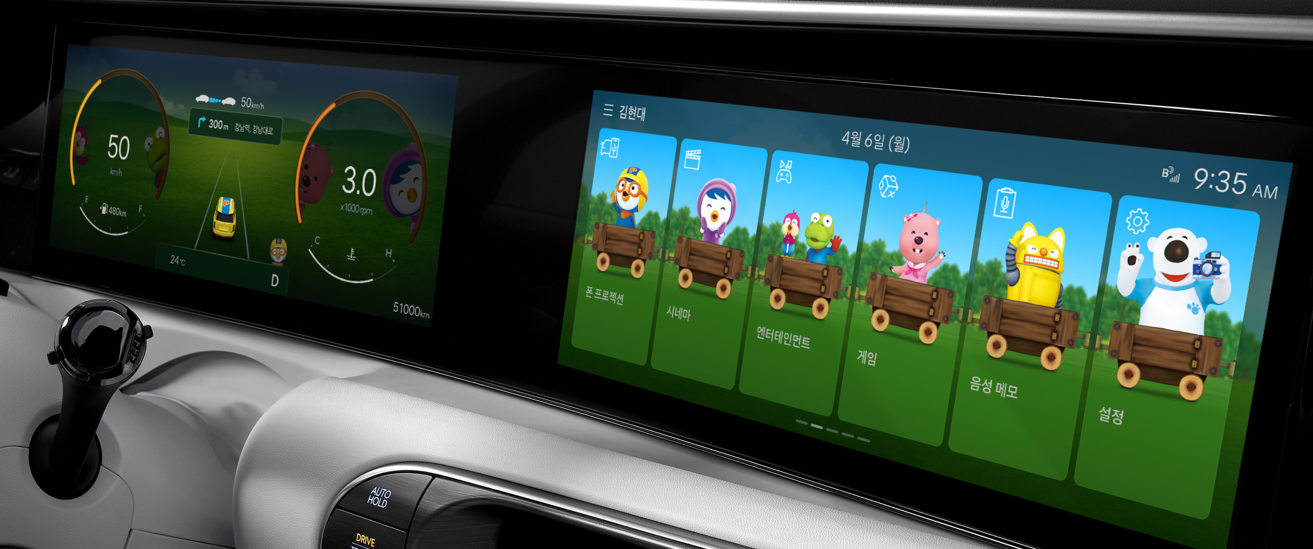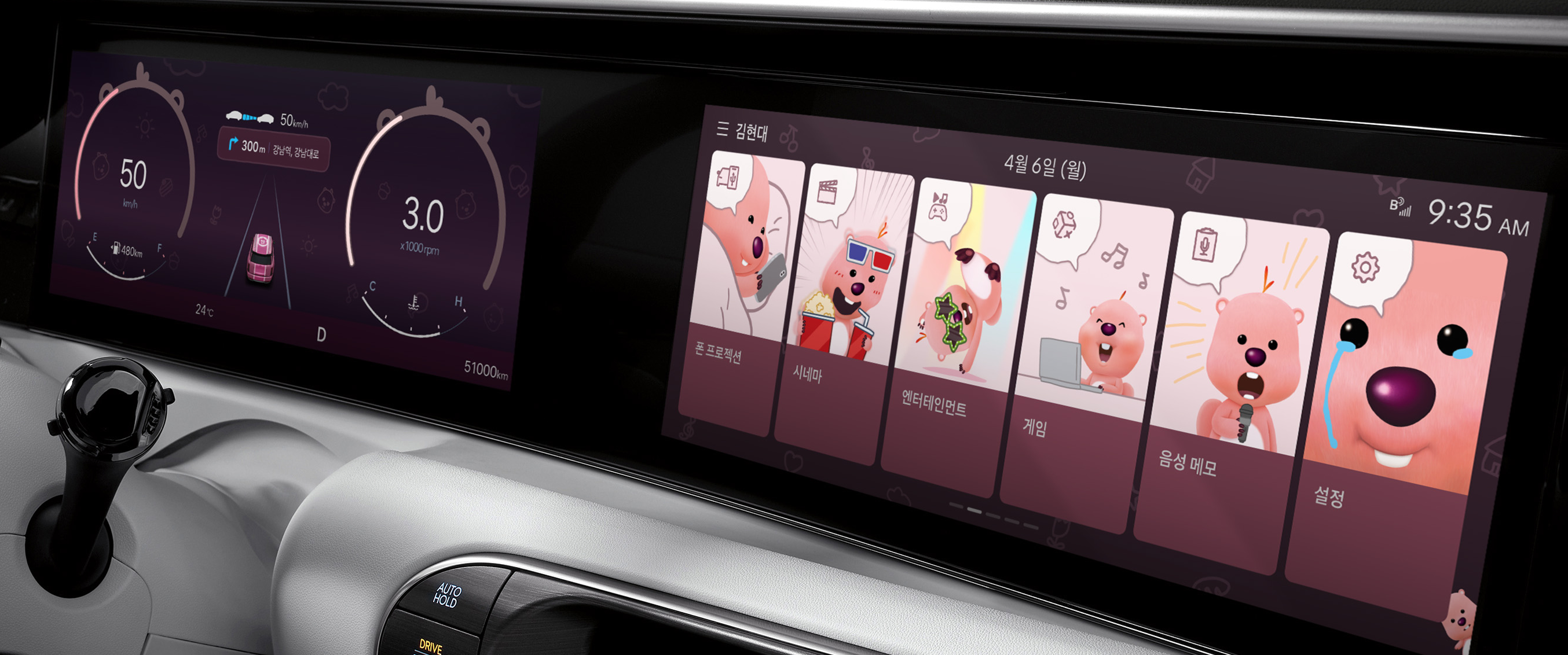 이번에 출시한 디스플레이 테마는 차량 시동 시 애니메이션과 계기판, 내비게이션 화면 등 인포테인먼트 전반에서 캐릭터를 보여주는 방식으로 구성됐다.