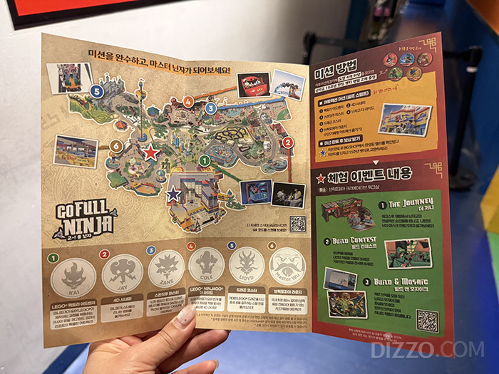 '닌자고 더 저니' 공간에서는 레고 브릭을 활용한 빌드 콘테스트, 가면 만들기, 모자이크 이벤트 등 창작 프로그램도 운영된다. 국내 유일의 닌자고 롤러코스터 '스핀짓주 마스터'는 어트랙션 자체가 세계관의 연장선으로 기능한다.