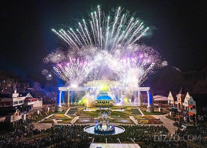 신규 공연도 같은 날 시작된다. 양정웅 감독이 총연출하고 가수 10CM 권정열의 보컬, 체코 프라하 메트로폴리탄 오케스트라가 참여한 스페셜 불꽃쇼 '빛의 수호자들(The Guardians of Light)'이 매일 밤 포시즌스가든에서 펼쳐진다. 국내 최초 시도인 대형 오브제 드론과 3D 입체 영상, 레이저 맵핑이 결합된 약 20분짜리 멀티미디어쇼다. 캐나다 3대 서커스 제작사 중 하나인 엘로와즈와 협업한 서커스 공연 '윙즈 오브 메모리(Wings of Memory)'도 그랜드스테이지에서 매일 2회 공연된다.