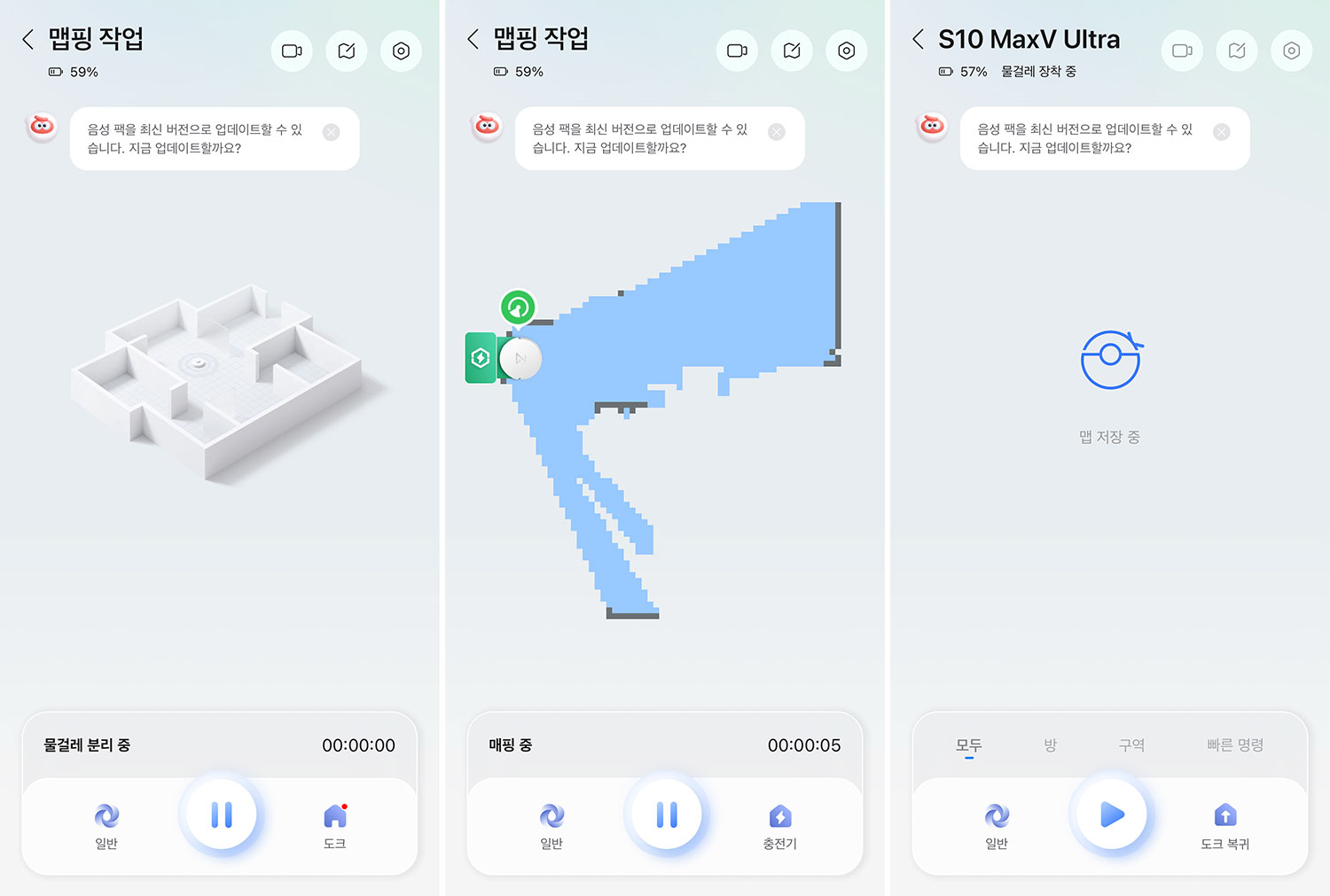 맵핑 속도는 빠른 편이며, 공간 인식 정확도도 안정적이다. 집 구조를 한 차례 주행하는 것만으로도 대부분의 공간이 정밀하게 구분되며, 방 단위 분류 역시 자연스럽게 이루어진다.